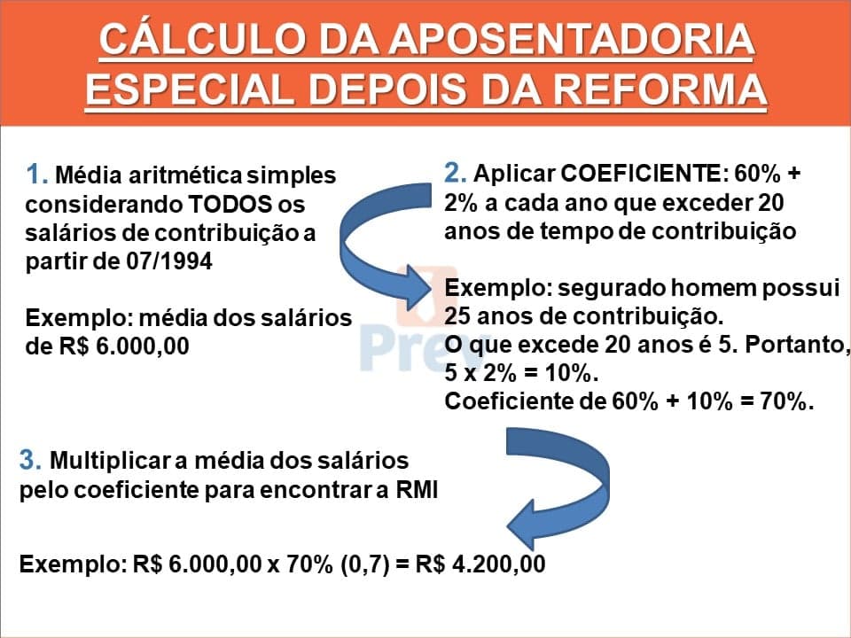A forma de cálculo da aposentadoria especial também sofreu alterações após a Reforma da Previdência.