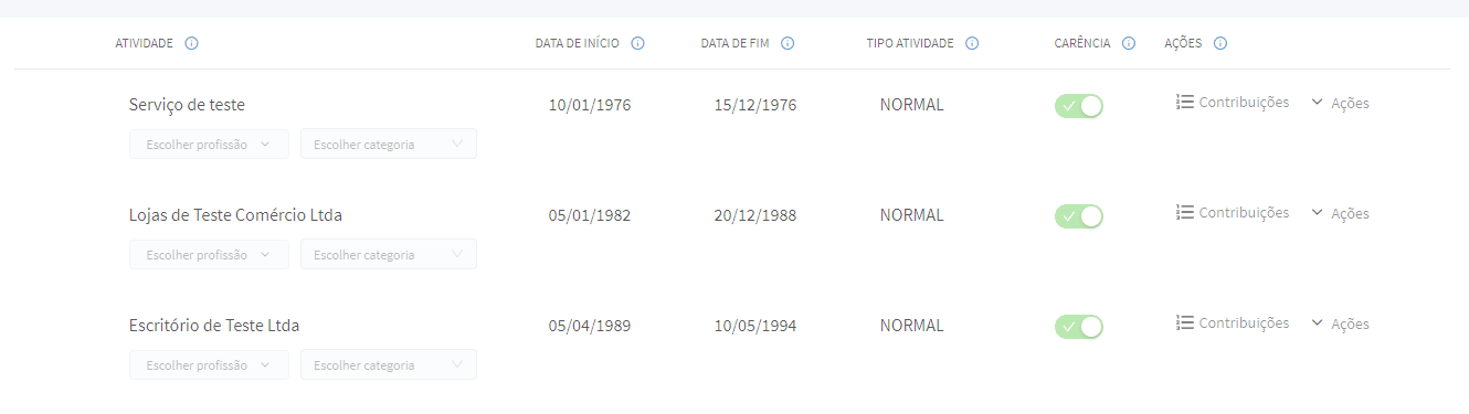 Aqui você precisa ter atenção, confirme que existem contribuições antes de julho de 1994. Na linha do vínculo, caso queira ver as contribuições, clique em “Contribuições“.