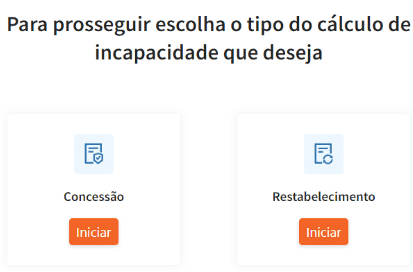 Veja como é fácil: informe o tipo de demanda de benefício de incapacidade desejado: se Concessão ou Restabelecimento: