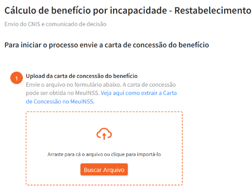 Após, junte o CNIS do(a) segurado(a) e a Carta de Concessão ou Comunicado de Indeferimento, a depender da opção escolhida no passo anterior:
