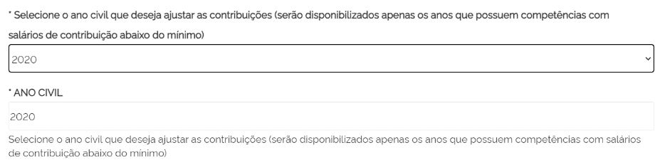 3 – Preencha seus dados e escolha o ano para complementação. O sistema apenas indicará o ano em que houve contribuições abaixo do mínimo.
