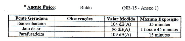 É normal ter em mãos um laudo técnico ou formulário PPP que indique mais de um nível de ruído, como no exemplo abaixo: