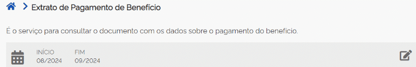 Aberta a aba do Extrato de Pagamento, selecione o período para o qual deseja visualizar as informações. Para isso, basta clicar nas datas já existentes para editá-las:
