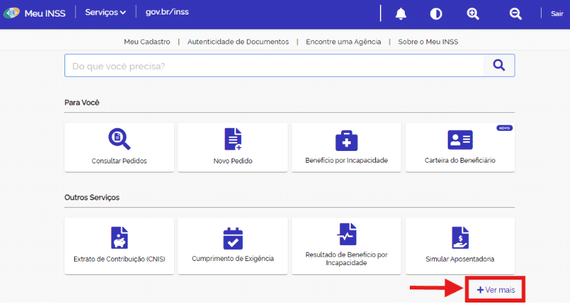 2. Em “Outros serviços”, clique em “+ Ver mais”;